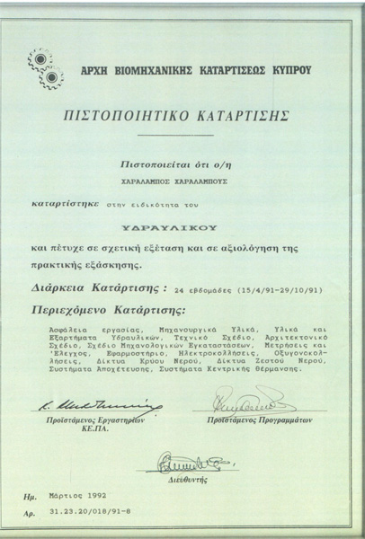 - Το 1985 σε ηλικία 14 ετών αρχίζω να φοιτώ στην Α' Τεχνική Σχολή Λεμεσού ως συγκολλητής στο σύστημα μαθητείας και παράλληλα δουλεύω ως συντηρητής στο Ξενοδοχείο OLD BRIDGE.